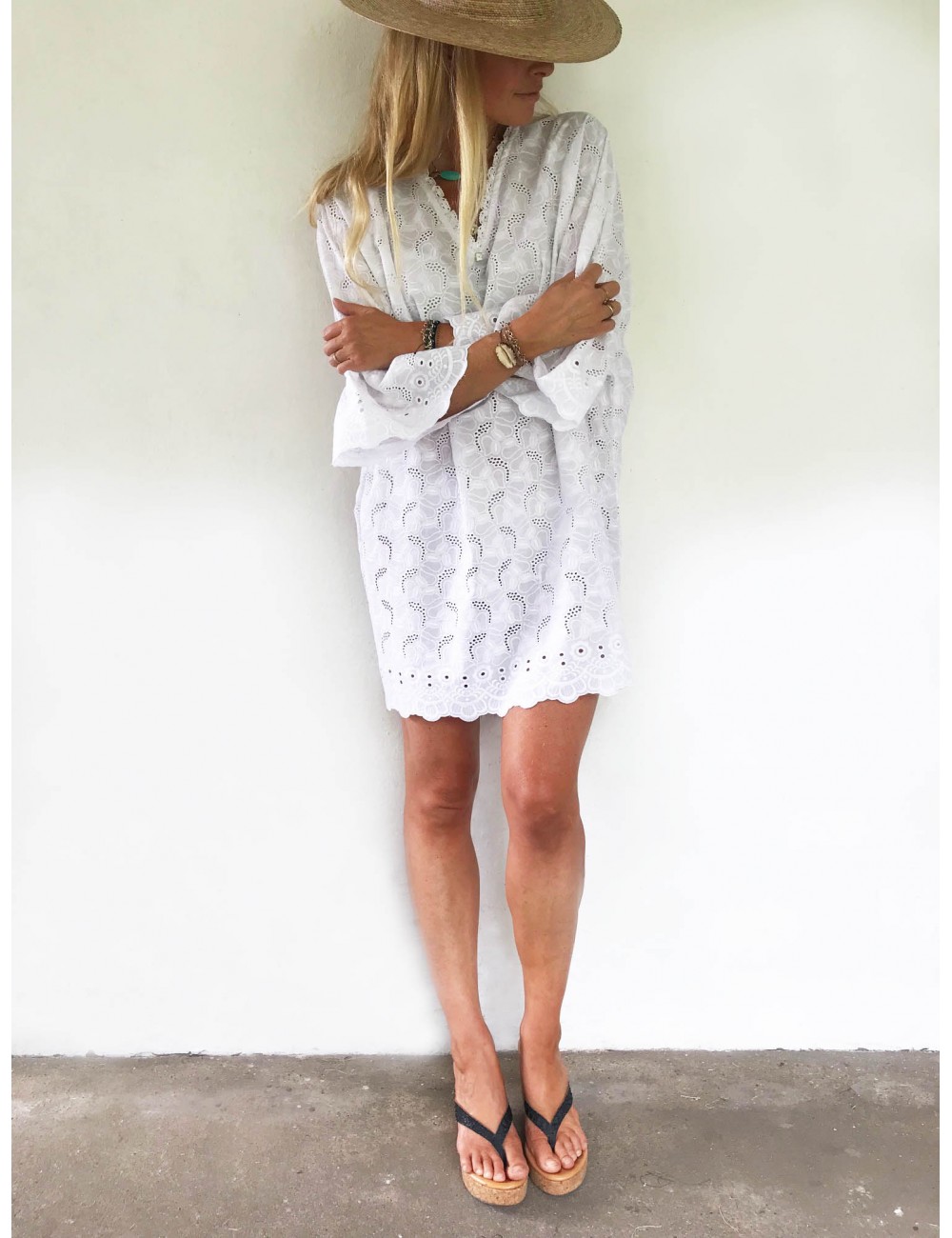 - Robe kimono blanche en broderie anglaise