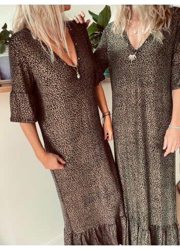 - Fente au côté avec couture coquillages cauri brodés au dessus de la fente