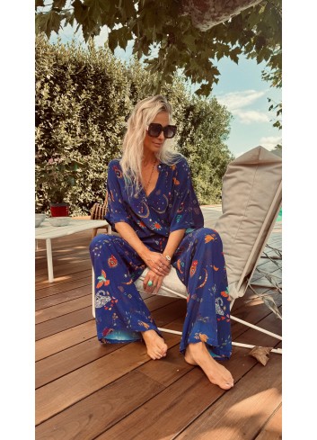 - Pantalon fluide large en crêpe imprimé exclusif "ASTRO"
