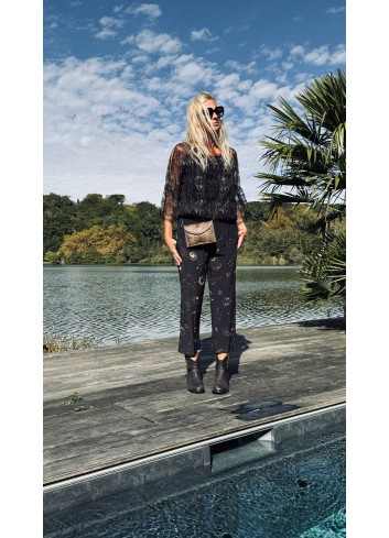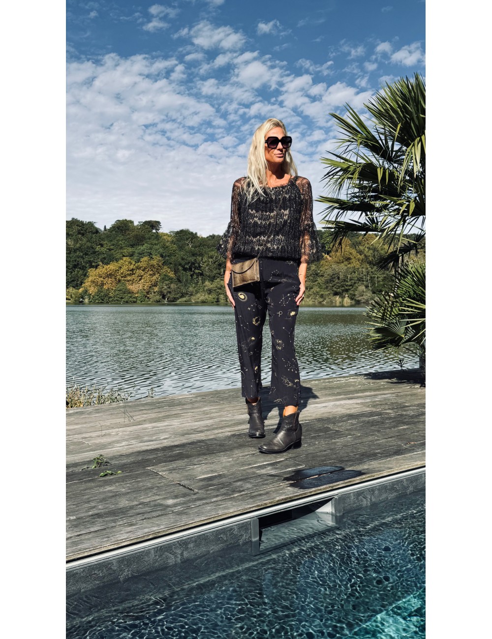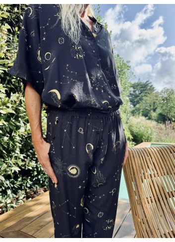 - Pantalon boyish 7/8eme en crêpe imprimé exclusif ASTRO