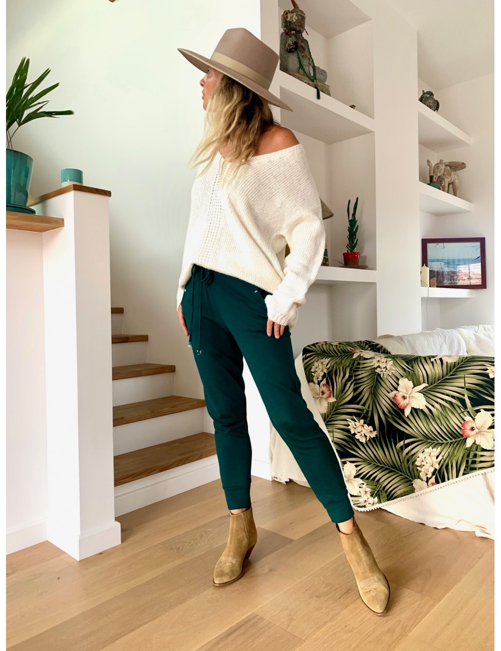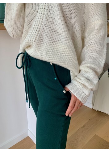 - Pantalon jegging légèrement sarouel en molleton doudou vert émeraude
