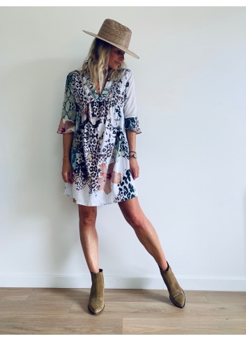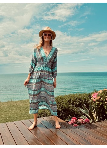 - Robe bohème porte feuille imprimé ethnique inspiration Vintage