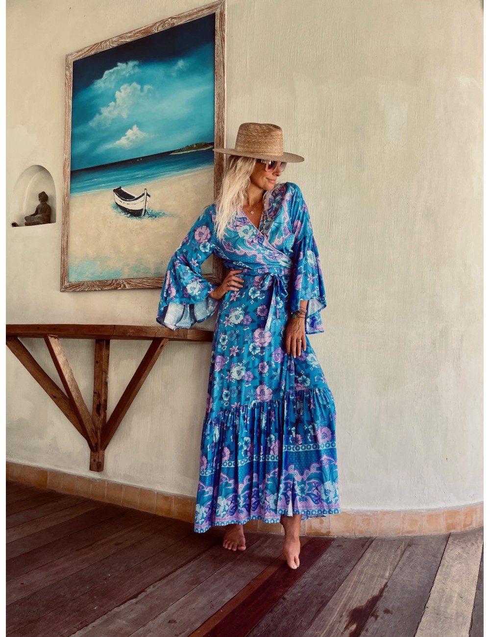 - Robe bohème porte feuille imprimé ethnique inspiration Vintage