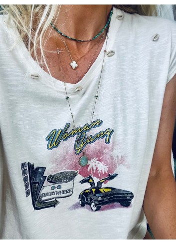 - encolure V brodée de coquillages cauri