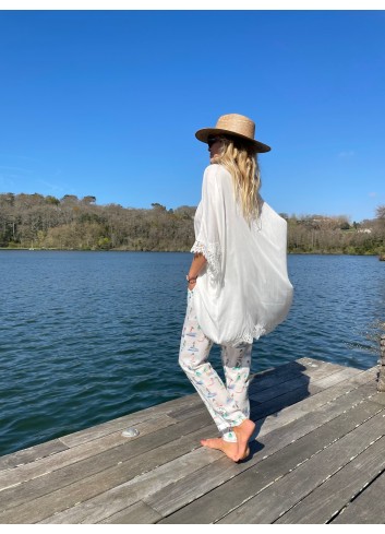 - Veste fluide en panne de velours de soie blanche à porter en costume avec le pantalon