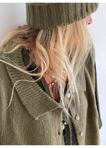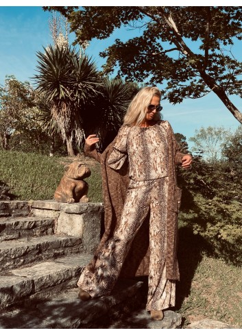 - Veste fluide en panne de velours de soie mordorée kaki à porter en total look avec le pantalon ou la jupe assortie ou depareillée
